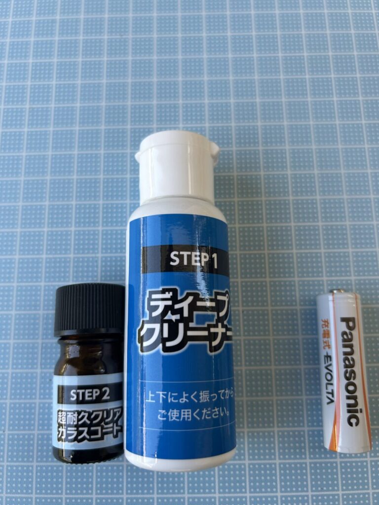 クリーナーとコーティング液、ナイロン手袋と布が入ってました。(充電電池は入ってはいません💦)