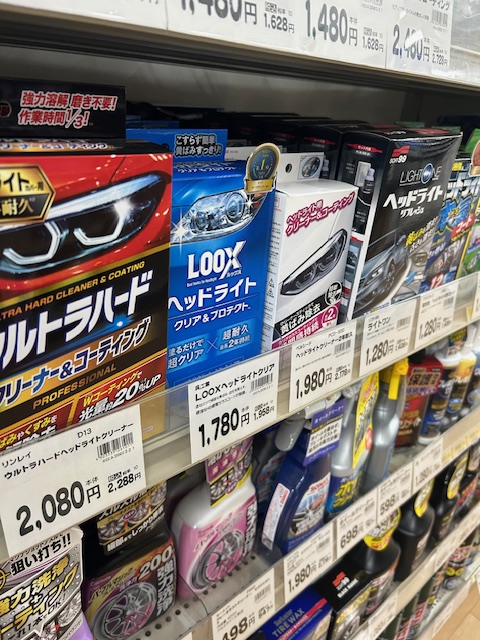 ホームセンターに行くと ライトのくもり改善商品が10種類くらい並んでいました。